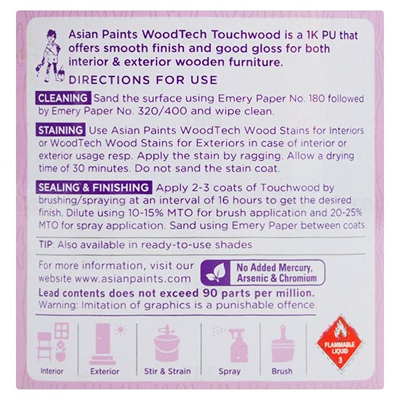 ASIAN PAINTS – WOODTECH TOUCHWOOD – TRANSPARENT – PU WOOD COATING
